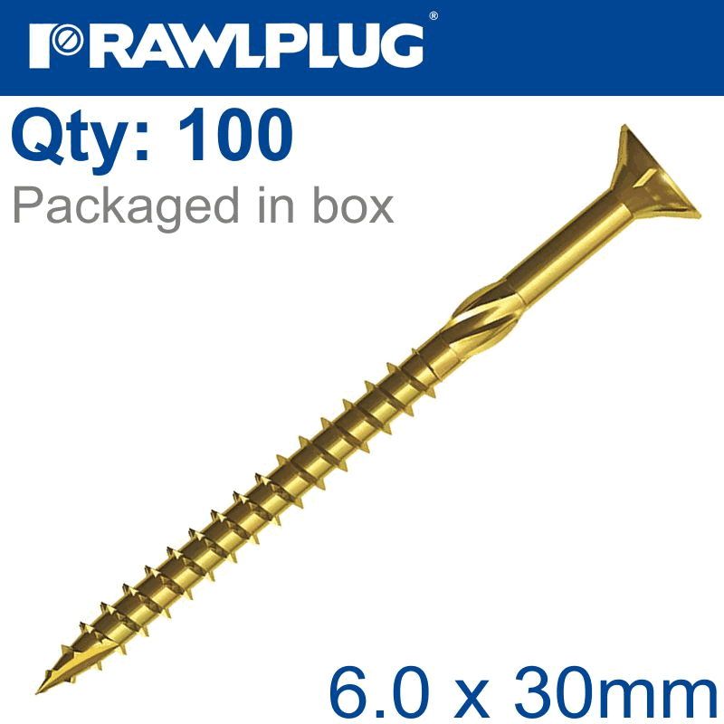 RAWLPLUG Torx T30 Chipboard Screw 6.0X30Mm X100-Box