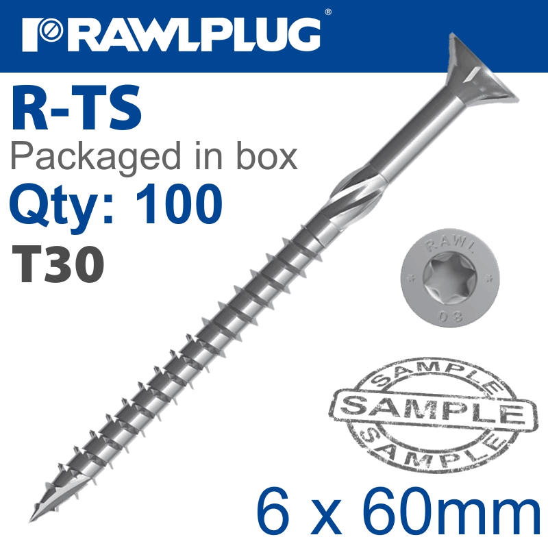RAWLPLUG Torx T30 Chipboard Screw 6.0X60Mm X100-Box
