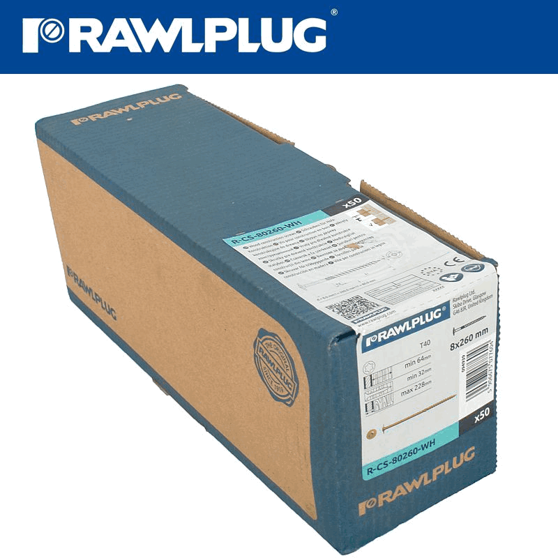 RAWLPLUG Torx T40 Timber Construction Screw 8.0X260Mm X50-Box