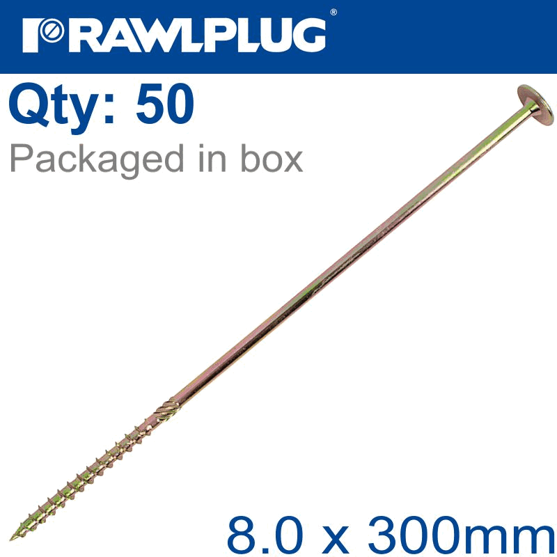 RAWLPLUG Torx T40 Timber Construction Screw 8.0X300Mm X50-Box