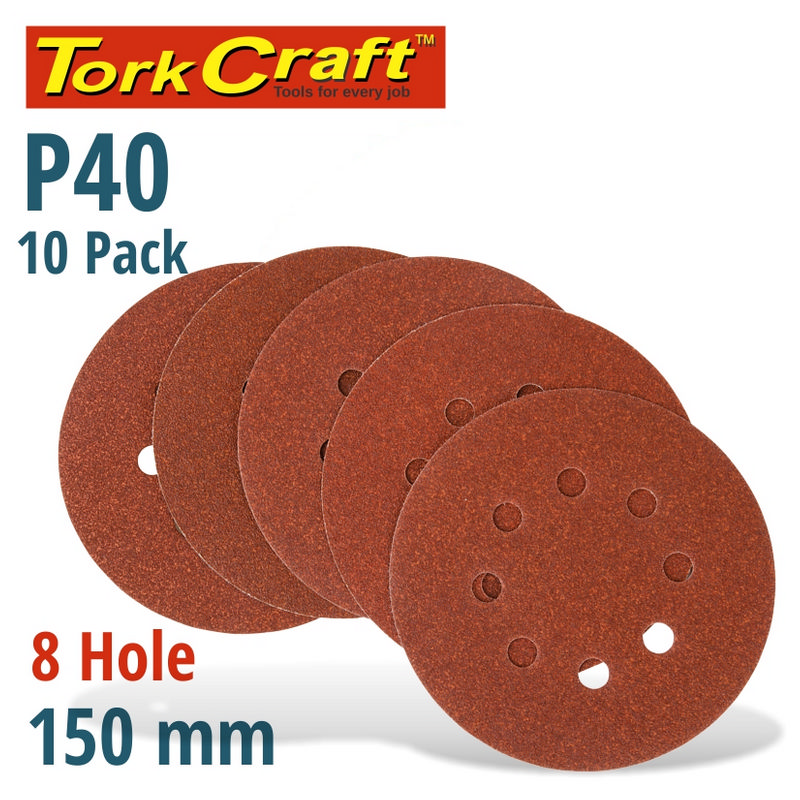 Tork Craft Sanding Disc Velcro 150mm 40 Grit With Holes 10/Pk