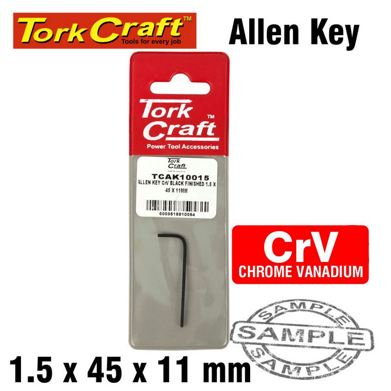 Tork Craft Allen Key Crv Black Finished 1.5 X 45 X 11mm
