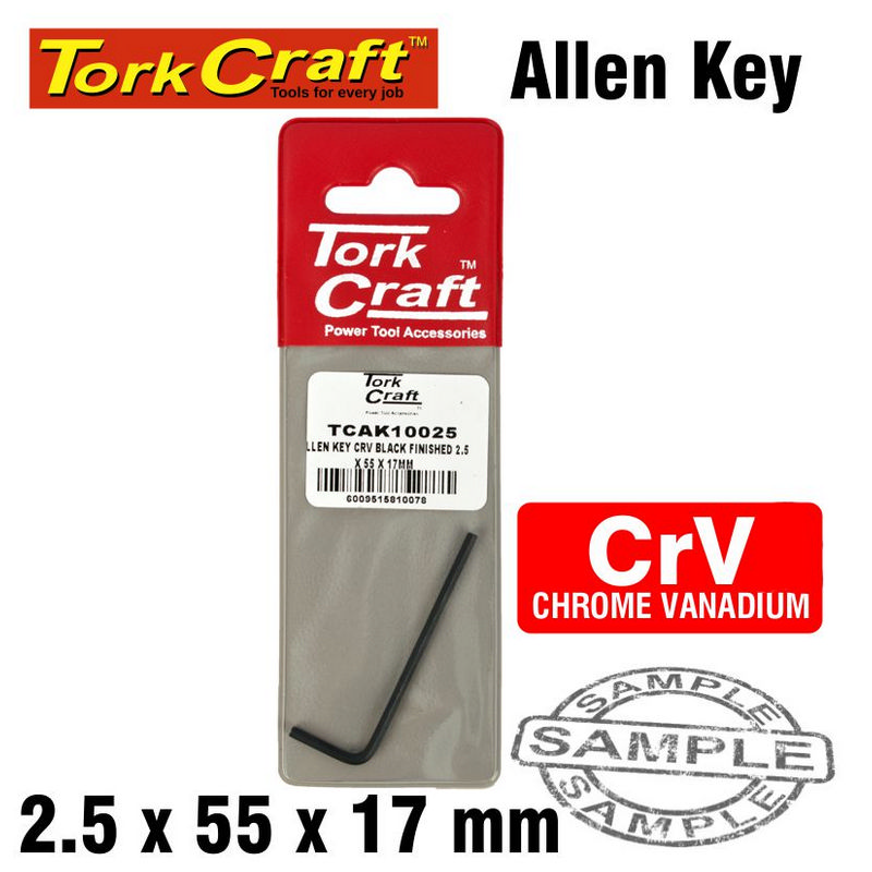 Tork Craft Allen Key Crv Black Finished 2.5 X 55 X 17mm