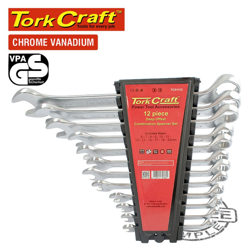 Tork Craft 12pcs deep offset combination spanner set 6-22mm